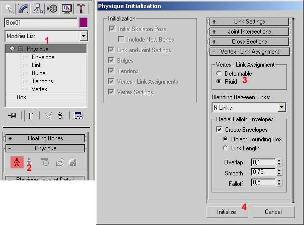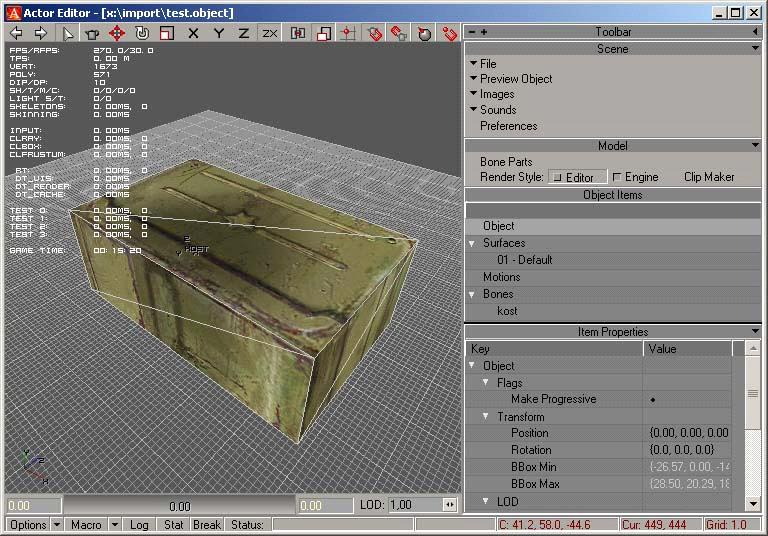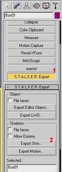 • Autodesk 3D Studio Max версий 6,7 или 8 (на других вроде плагин экспорта не работает, но я не уверен) • 3DS Max STALKER Plug-In для экспорта в формат object (.obj) • S.T.A.L.K.E.R. SDK При создании собственных текстур потребуется: • Adobe Photoshop • DDS-плагин от nVidia Приступим к креативу. Пример будем рассматривать на примитивной модели кубика. 1) Запускаем 3DS Max и создаем наш кубик. 2) Далее накладываем на него текстуру. Запускаем редактор материалов (кнопка «М» по дефолту), выбираем тип материала, нажав на кнопку Standart (1), и в раскрывшемся списке выбираем S.T.A.L.K.E.R. Mtl (2), далее, в свитке Blinn Basic Parameters, щелкаем на маленькую кнопку напротив Diffuse (3), в раскрывшемся списке выбираем Bitmap (4), и выбираем требуемую текстуру из папки gamedata нашего SDK. Для примера я выбрал ...gamedata\textures\wpn\wpn_pkm_lenta.dds. Далее назначаем нашу текстуру для кубика и настраиваем ее внешний вид либо в самом Редакторе Материалов, либо, если объект сложный, - модификатором Unwrap UVW (кто работает в 3DS Max - знает). 3) После текстуривания нашего объекта отмасштабируем его до нормальных размеров игры (для облегчения этого процесса я импортирую в сцену какую-нибудь модель из игры, например, АК-74), и приступаем к созданию костей. Идем в Create -> Systems -> Bones и создаем пару костей внутри нашей коробки приблизительно такого вида (см. рисунок). Первую косточку обзываем, например, kost, вторую можно не трогать и вообще ее можно потом удалить. 4) Теперь выделяем нашу коробку и в закладке Modify добавляем ей модификатор Physique (1). В свертке модификатора жмем кнопку Attach to Node (2), кликаем по нашей косточке с именем kost и в развернувшемся списке выбираем Riquid (3) и жмем Initialize (4) (см. рисунок). 5) Далее, в свитке Physique level of Detail меняем параметр Skin Update на Rigid, в дереве модификатора Physique выбираем вершины нашего объекта (Vertex), выделяем все вершины нашего кубика при нажатой кнопке Select, выбираем тип вершин Rigid (4), жмем кнопку Assign to Link (5) и кликаем по нашей косточке. 6) Теперь все готово к экспорту в формат object (.obj), который понимает Actor Editor из SDK. Идем на закладку Utilites и жмем кнопку S.T.A.L.K.E.R. Export (1) (кнопка эта у вас там будет находиться при правильной настройке плагина). Выделяем наш кубик и жмем кнопку Export Skin. Сохраняем, наблюдая лог в окошке на отсутствие ошибок. 7) Запускаем Actor Editor из комплекта SDK и загружаем нашу сохраненную модель и видим приблизительно следующую картину: 8) В панели Object Items видим характеристики нашего объекта (нас интересуют только Surfaces и Bones). В Surfaces задаются материалы и шейдеры для нашего объекта. Раскрываем список Surfaces, выбираем 01-Default (это я забыл материал в Максе обозвать) и устанавливаем параметры: Shader: models/model Compile: def_shaders/def_vertex Game Mtl: objects/small_box ![]() 9) Видимо использовать можно и другие, но я еще не разобрался до конца. Далее настраиваем нашу косточку. Раскрываем список Bones, выбираем нашу kost. Далее жмем напротив Generate Shape кнопку All, настраиваем вес параметром Mass, можно настроить материал параметром Game Material (я оставил default_object) затем выбираем тип баунд_бокса нажатием кнопки Type. Я выбрал Box. Его кстати можно потом вращать, двигать и масштабировать. 10) После настройки параметров экспортируем нашу коробочку в .ogf-файл из меню File -> Export, и подменяем полученной моделью, например, болт. Далее ходим и швыряемся магазинами от ПКМ в головы зазевавшимся неписям ![]() Автор: tambovski Прикрепления: