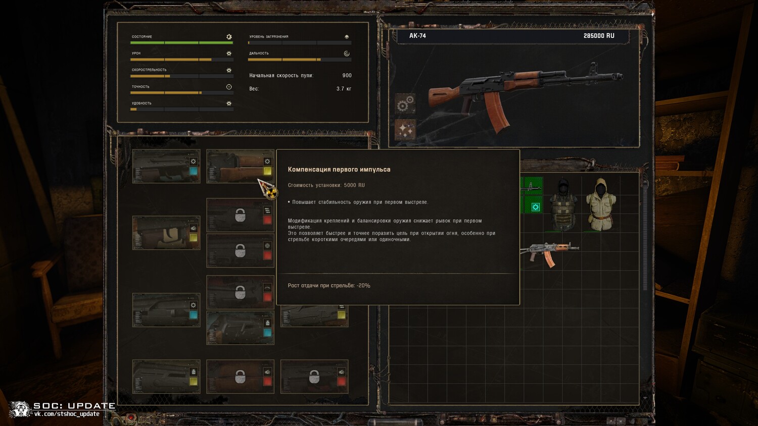 По концепции система отчасти напоминает апгрейды из аддонов «Чистое Небо» и «Зов Припяти», но технически реализована иначе. Полноценная демонстрация будет представлена позже в формате видеоролика.